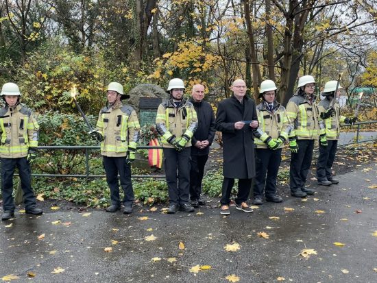 Heute gedachten auch in Beckinghausen wieder viele Personen der Opfer der beiden Weltkriege sowie Hass, Willkür und Terror. Am Volkstrauertag startete es mit einer Gedenkrede in den Räumen der Freiwilligen Feuerwehr los. Anschließend gingen die etwa 50 Teilnehmenden – darunter auch der Löschzug, der Schützenverein mit Spielmannszug und einige private Vertreter – zum Gedenkstein am Kanal. Dort legten der stellv. Bürgermeister Thorsten Redeker und der heimische SPD-Ratsherr Detlef Seiler den Kranz der Stadt Lünen nieder. Zum Abschluss gab es wieder einen gemütlichen Ausklang bei der Feuerwehr.