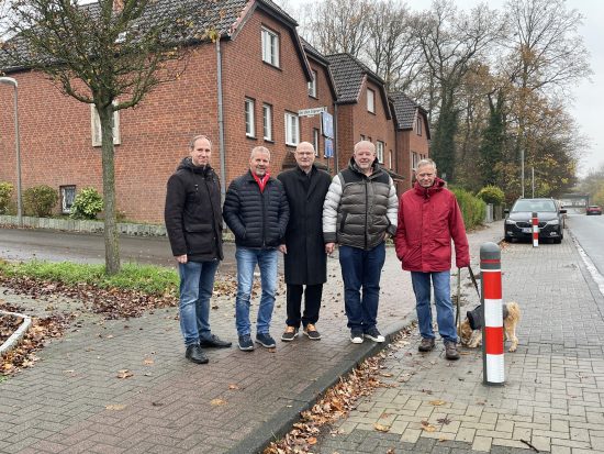 Links und rechts von der Ein- und Ausfahrt sichern die neuen Poller ab, dass parkende PKW nicht zu dicht abgestellt sind.Der SPD-Ortsverein Lünen-Beckinghausen begutachtet die neuen Poller an der Ausfahrt zur KreuzstraßeVor der Maßnahme war die Kreuzstraße für herausfahrende PKW schlecht einsehbar. Viele Fahrzeughalter parkten zu dicht an die Ausfahrt.Zwei Poller sorgen nun für eine bessere Sichtachse.