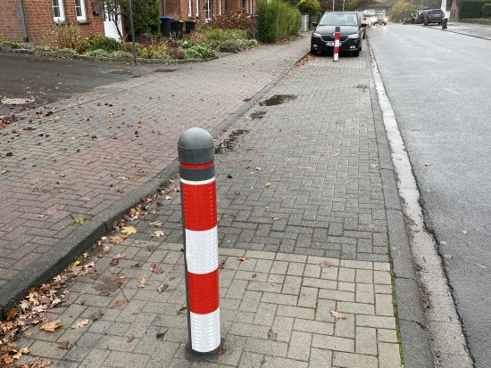 Beschwerlich war die Ausfahrt aus der Straße „Am alten Sägewerk“ im Stadtteil Beckinghausen. Als Autobesitzer dieser Straße konnte bis vor kurzem der Verkehr auf der Kreuzstraße nur spät erkannt werden, da der Parkstreifen ebendort die Sicht nahm. Jetzt hat sich dieses Problem verringert, weil fest betonierte Poller den Abstand zwischen parkenden Autos sowie Ein- und Ausfahrt auf ein günstigeres Maß festsetzen.