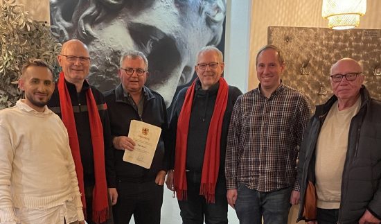 Für Udo Kath hatte er etwas Besonders im Rucksack. Dieser erhielt die lebenslang gültige „Jubiläumskarte der Ehrenamtskarte NRW“ von der Stadt Lünen, weil er seit 45 Jahren ehrenamtliches Engagement zeigte und zeigt. Sei es in der SPD in den verschiedensten Funktionen wie Kandidat für die Europawahl oder 22 Jahre Vorsitzender des Ortsvereins, als ehemaliger Wasserballtrainer, als Vorsitzender eines Mandolinenorchesters oder als Sprecher des „Arbeitskreis Lüner Stolpersteine“. Udo Kath: „Ich bin nur einer von vielen Ehrenamtlern die mit viel Freude an ihren Tätigkeiten unterwegs sind und möchte dazu aufrufen, sich selbst an der Aktion Ehrenamtskarte zu beteiligen. Dadurch wird auch in Lünen deutlich, wie groß das Engagement der Bürgerinnen und Bürger ist und wie wichtig diese Tätigkeiten in Vereinen, Kirchen, Verbänden, Parteien und Gewerkschaften für den Bestand dieser Organisationen sowie für den sozialen Zusammenhalt in unserer Region sind.“